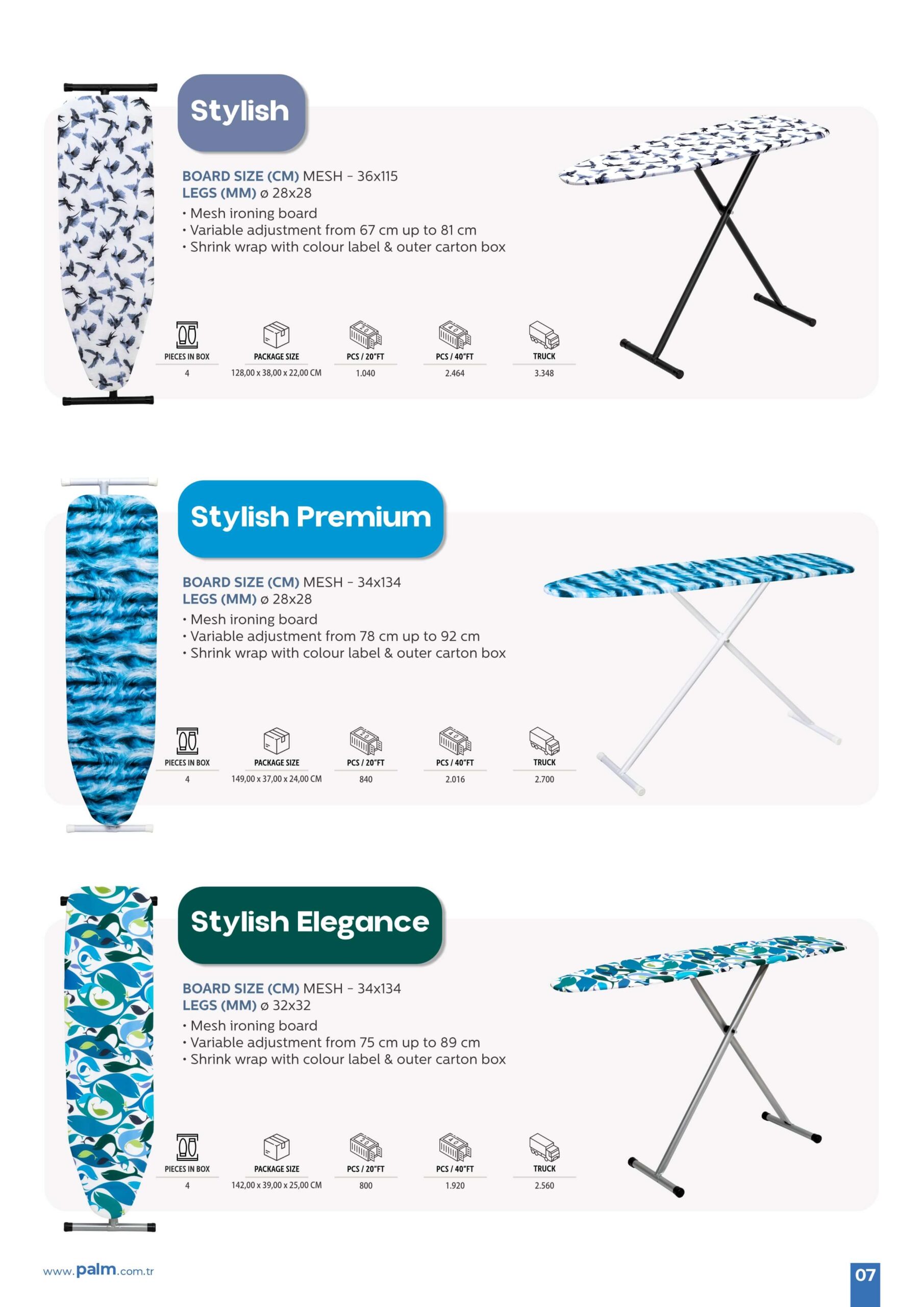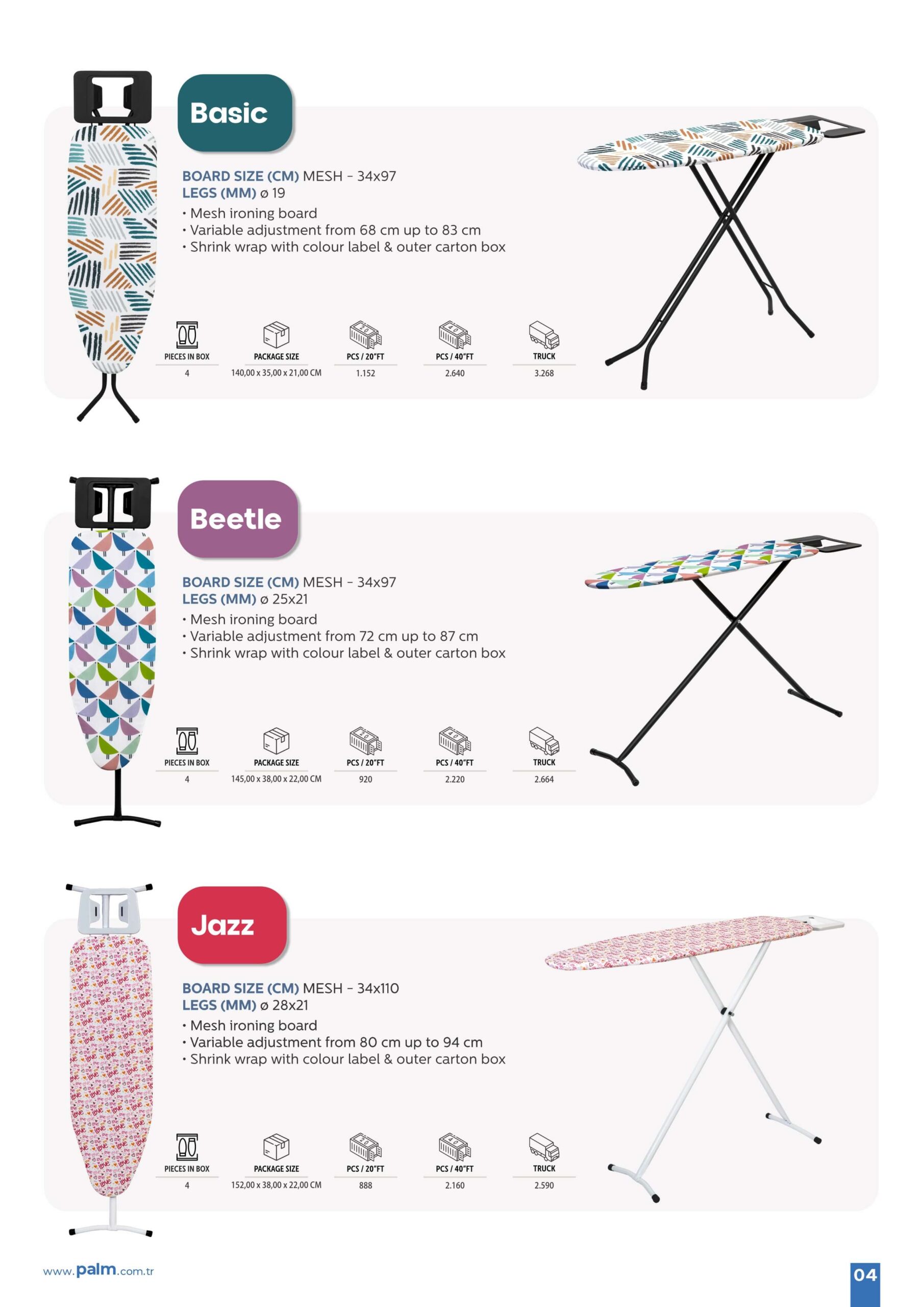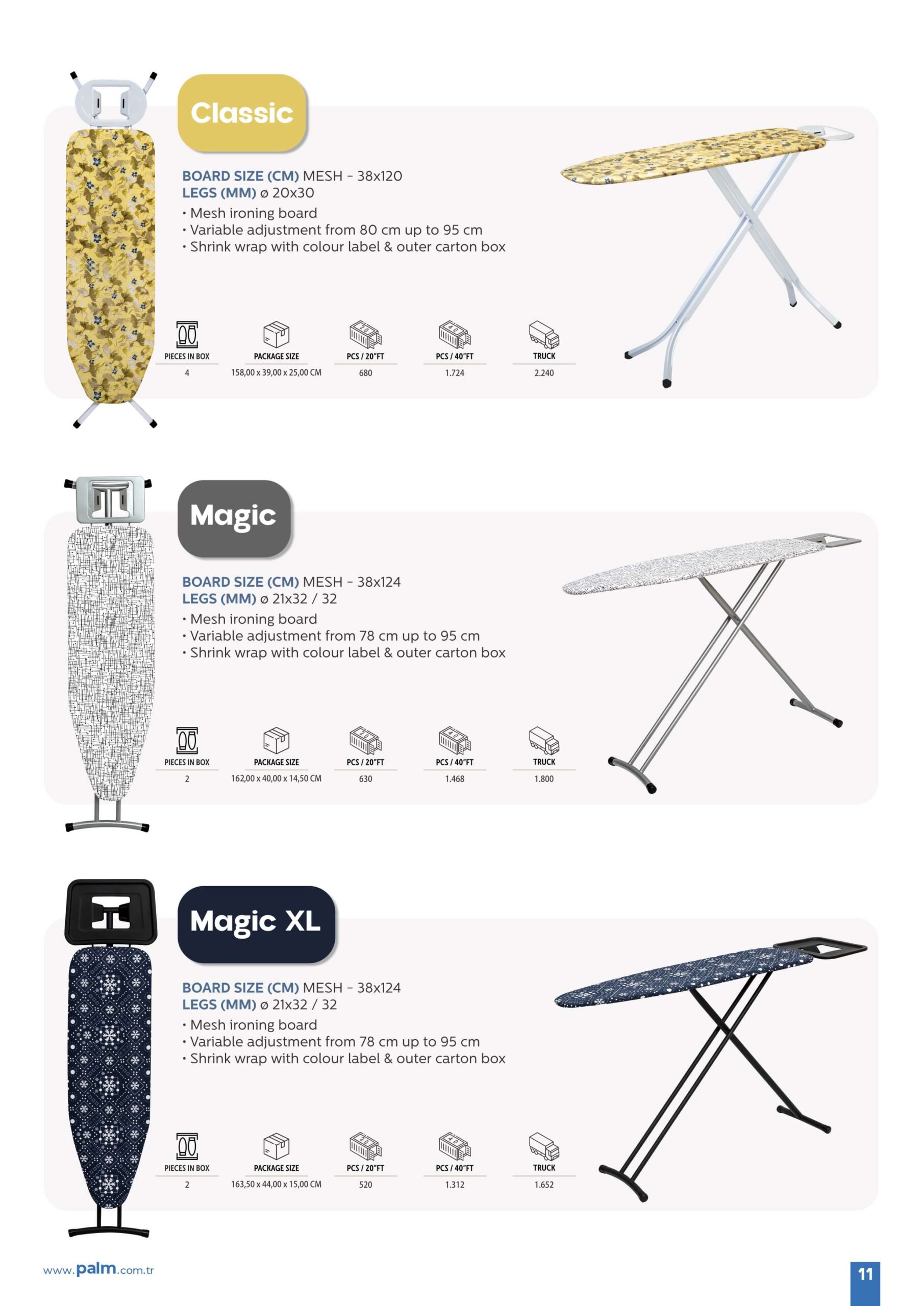 Made from high-quality materials, our ironing boards promise long-lasting use. Durable steel legs and thermally insulated boards provide a safe and effective ironing experience.