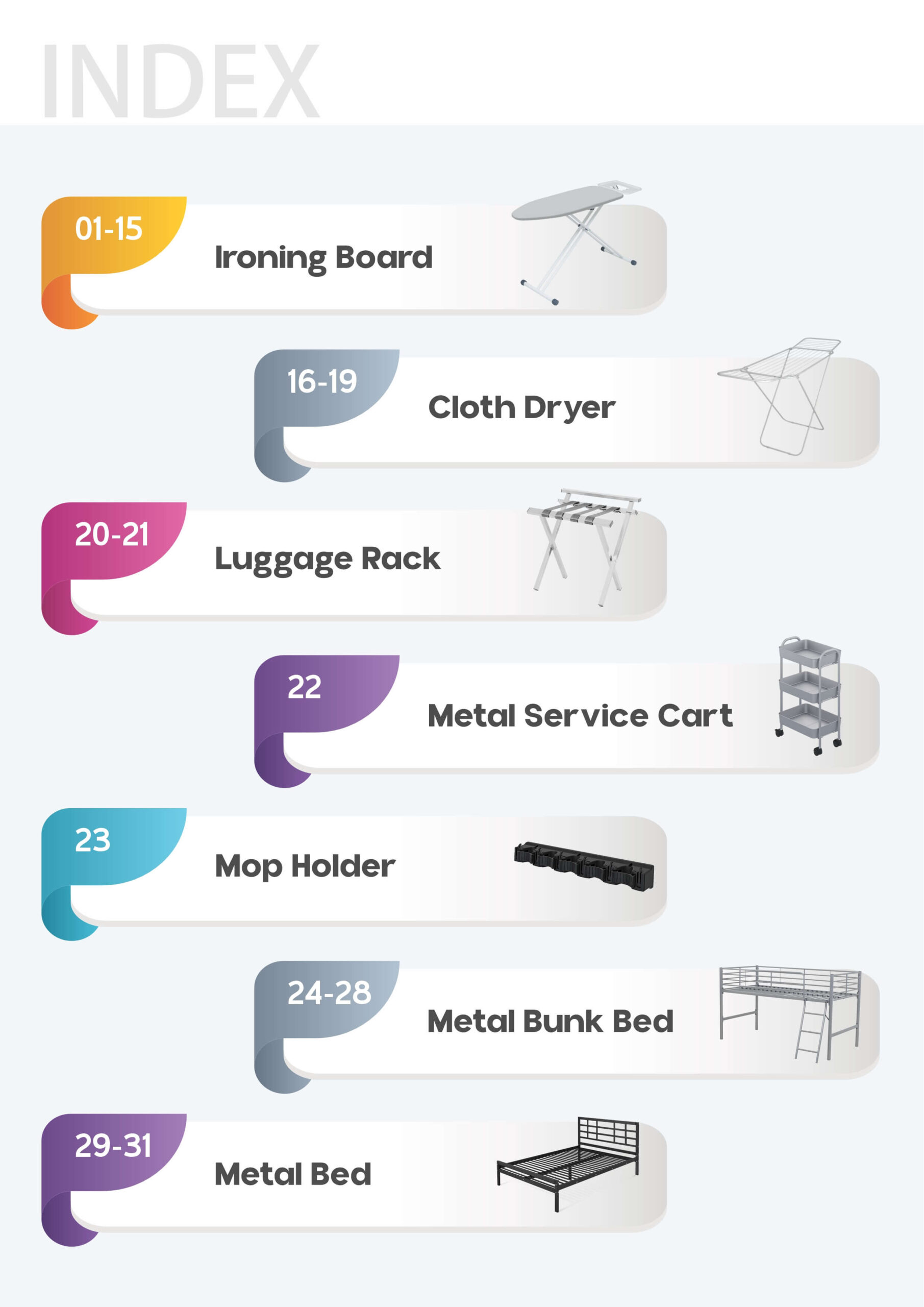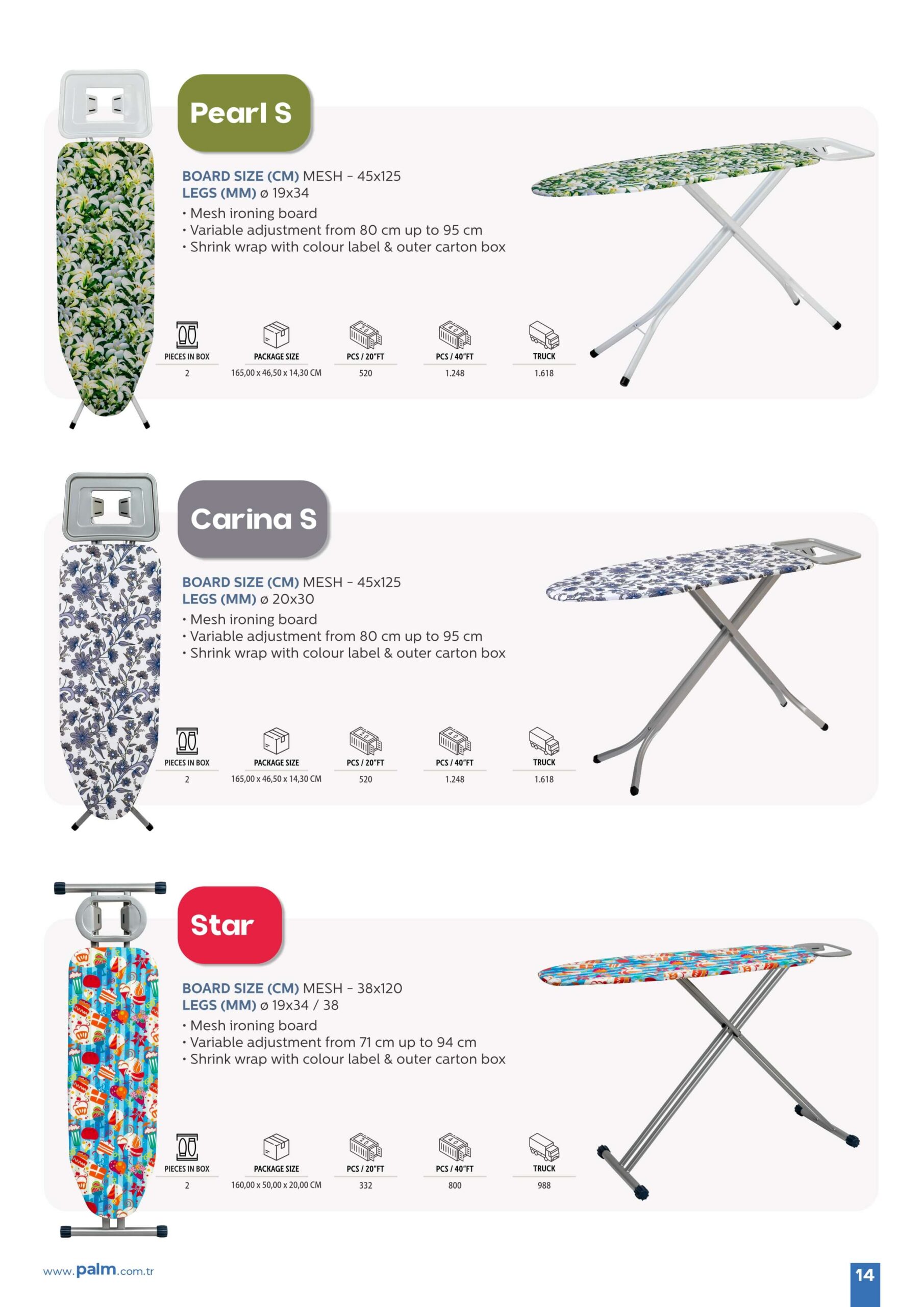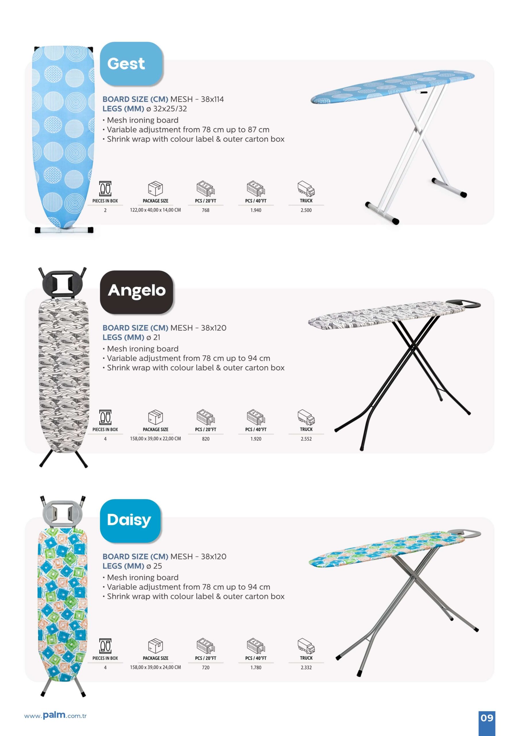 The ergonomic design of our ironing boards provides a comfortable working space even during prolonged use. With adjustable height feature, it can be tailored to suit every user, ensuring your well-being.